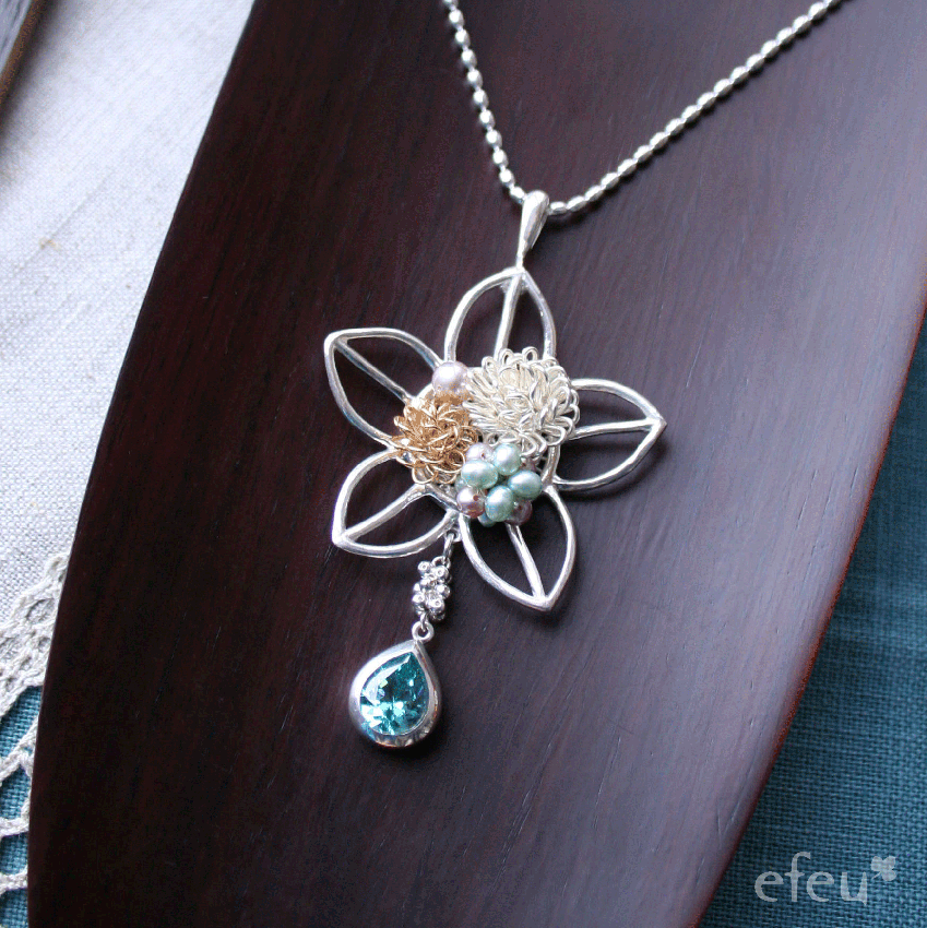 作品紹介 アートクレイシルバー(銀粘土)と異素材との組み合わせで制作した作品です。多様な素材との組み合わせで、表現方法は無限に広がります。アートクレイは、ジュエリーからオブジェまで、思い描いたものを自由に作れるのが魅力です。 担当・考案セミナー例 2006年 10周年特別セミナー着せ替えバングル 2008年 覆輪留めセミナーペアシェイプカット石のペンダント 2008年 覆輪留めセミナーメーズカット石のブレスレット コンテスト作品 「奏でる」➡ 「碧い精霊」➡ 「宇宙の振り子」➡ この記事を書いた人efeuこのライターの記事December 8, 2022efeu豆知識いぶし仕上げって何?November 2, 2022efeu豆知識石の色が変わる⁉教室課題標準カリキュラム アレンジデザイン教室課題標準カリキュラム メンズデザイン教室課題標準カリキュラム スウィートデザインefeuの記事一覧